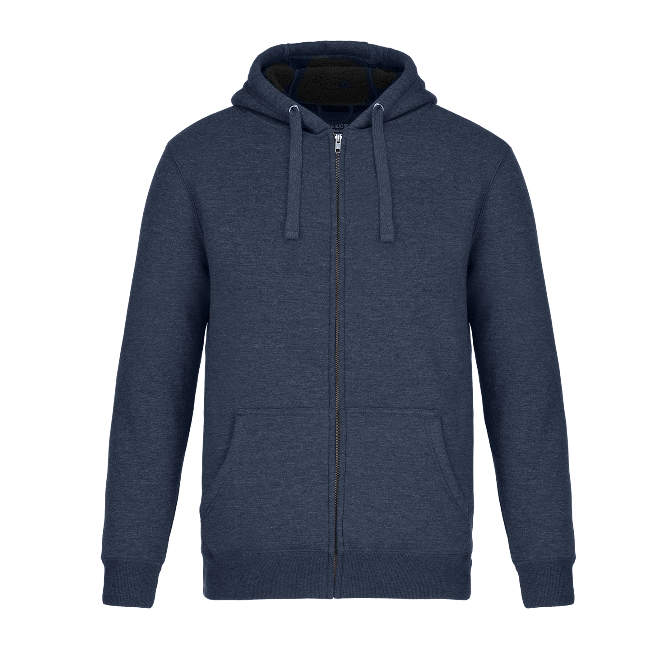 60% Cotton, 40% Polyester bonded with sherpa fleece. Adjustable drawcord in hood. Double layer rib knit cuff & hem.