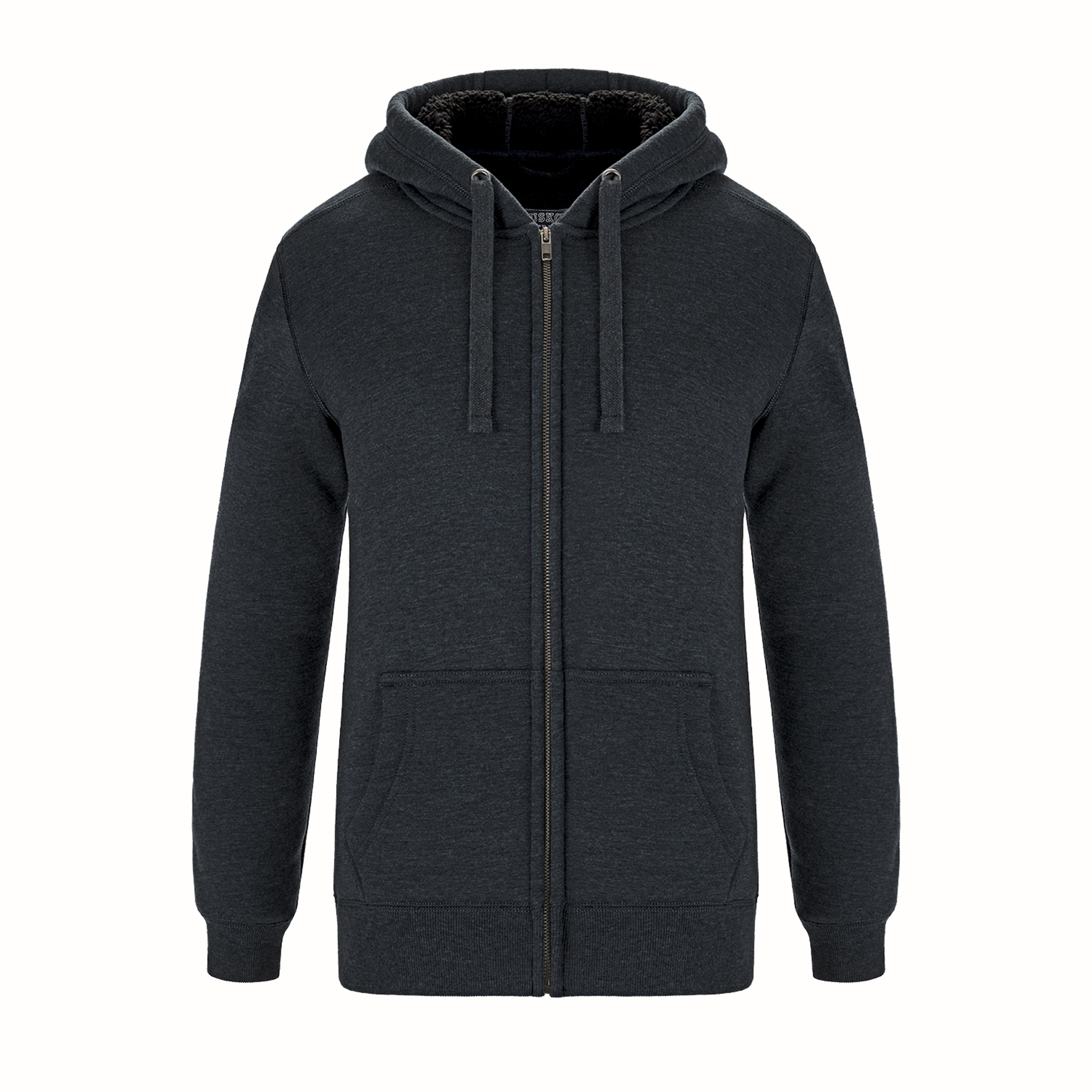 60% Cotton, 40% Polyester bonded with sherpa fleece. Adjustable drawcord in hood. Double layer rib knit cuff & hem.