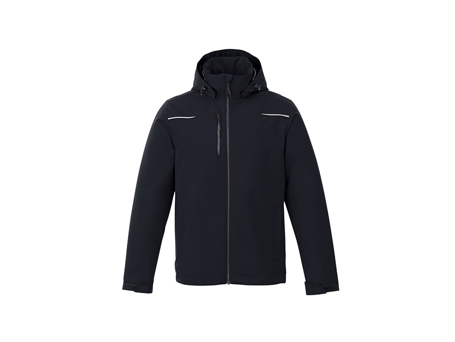 100% Polyester mechanical stretch woven, waterproof. 100% polyester soft fill. Breathability, media pocket. Detachable hood.