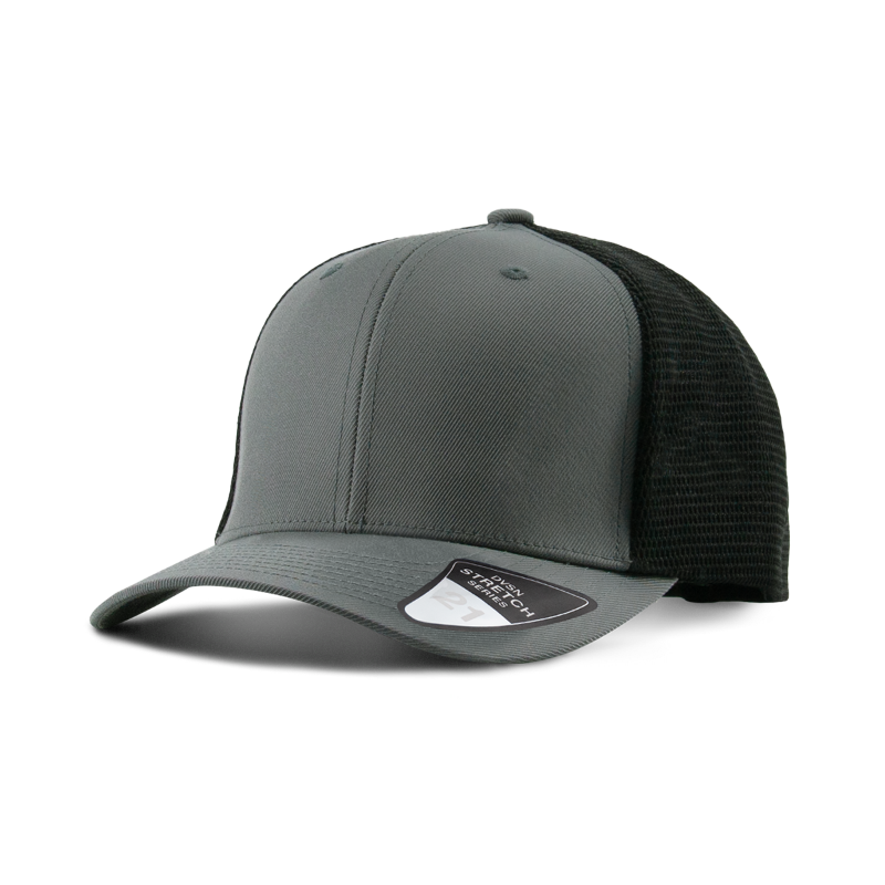 100% Polyester, mid profile, 6 panel, structured. Elastic mesh back. Silicone snapback closure. Elastic stretch sweatband.