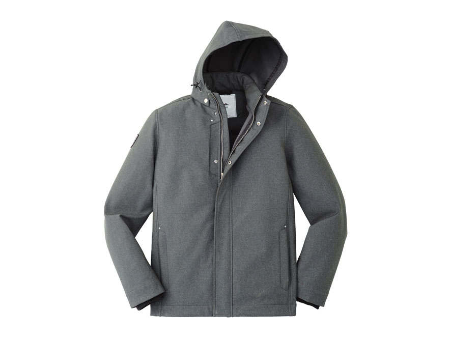 95% Polyester, 5% Spandex woven bonded to 100% microfleece with waterproof, breathable membrane and water repellent finish. This spring/fall jacket comes with a detachable zip off contour hood with drawcord and exterior cordlocks.