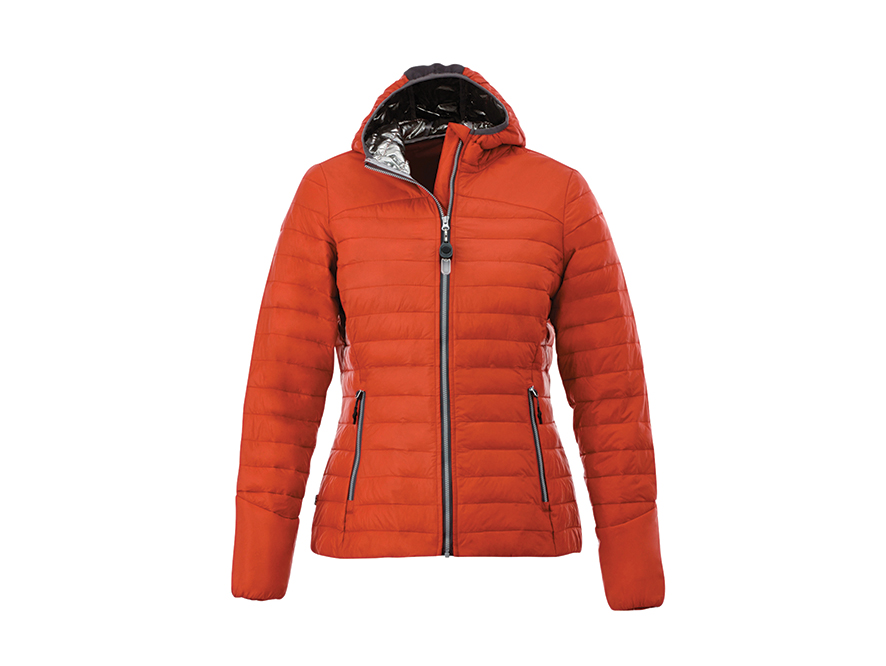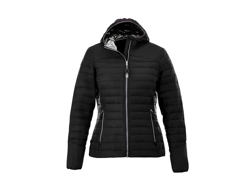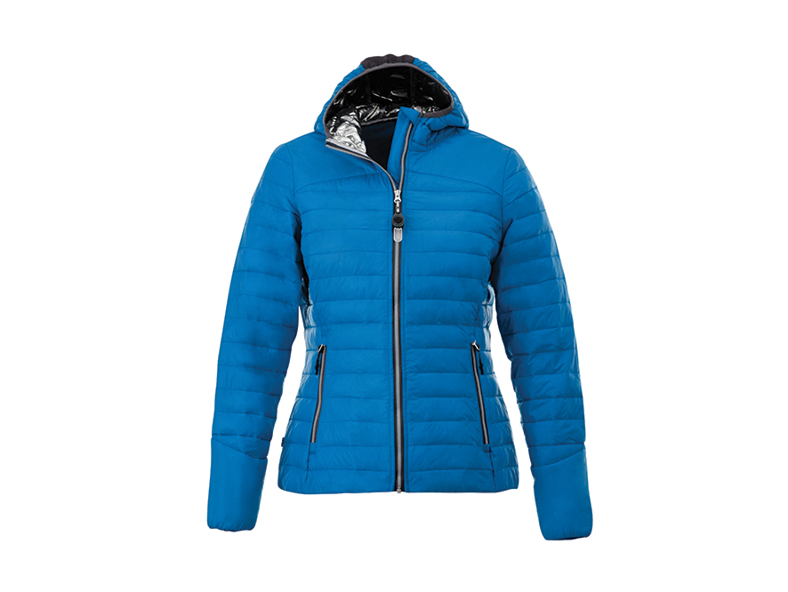 100% Nylon dull cire woven, 100% polyester faux down fill. Waterproof & breathable. Also available in men's and youth.