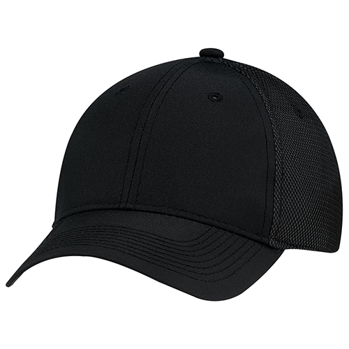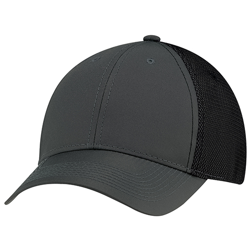 Constructed full fit, polyester rib stop and bonded mesh back. Buckram laminated front panels with pro stitch. Pre curved peak with 8 rows of stitching. Self cloth back strap with velcro closure.